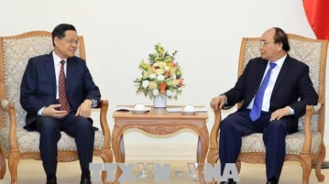 (VOVWORLD) -越南政府总理阮春福4月20日在政府总部会见来访的中国广西壮族自治区政府主席陈武。阮春福高度评价陈武和广西壮族自治区为越南与广西乃至越中全面战略合作伙伴关系发展做出的重要贡献。