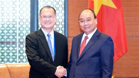 (VOVWORLD) - 越南政府总理阮春福3月30日会见来越出席大湄公河次区域经济合作第六次领导人会议的中国香港新华集团主席蔡冠深。