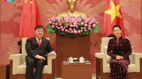 (VOVWORLD) - 越南国会主席阮氏金银1月19日会见来越出席亚太议会论坛第26届年会的中国全国人大常委会副委员长陈竺。