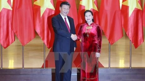 (VOVWORLD) - 越南国会主席阮氏金银12日在河内会见中共中央总书记、国家主席习近平。