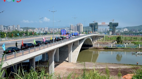 (VOVWORLD) - 北仑河二桥越南段长155米,中国段长460米,共有4条车道,总投资3360亿越盾。