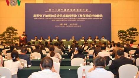 (VOVWORLD) - 以“新形势下加强和改进党对新闻舆论工作领导的经验做法”为主题的第13次越中两党理论研讨会5月25日在中国河南郑州开幕。