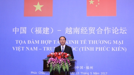 (VOVWORLD) - 对中国进行国事访问并出席“一带一路”国际合作高峰论坛期间,越南国家主席陈大光5月13日下午在中国福建省福州市出席越南-中国(福建)经贸合作论坛并发表讲话。