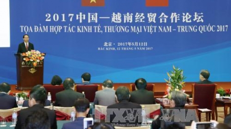 (VOVWORLD) - 正对中国进行国事访问并出席“一带一路”国际合作高峰论坛的越南国家主席陈大光5月12日出席在北京钓鱼台国宾馆举行的2017年越中经贸合作论坛并发表讲话。