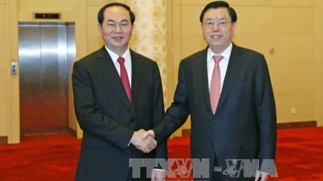 (VOVWORLD) -越南国家主席陈大光5月12日在北京会见中国全国人大常委会委员长张德江时建议两党、两国高层保持接触;加强指导各级、各部门认真落实业已达成的合作协议和计划,积极扩大互利合作,助力实现两国发展战略。