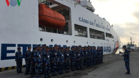 (VOVWORLD) - 越南海警8004号船与海警司令部工作代表团5月8日从海警第一区军港出发,前往中国海南省海口市进行访问,并与中国海警力量交流。