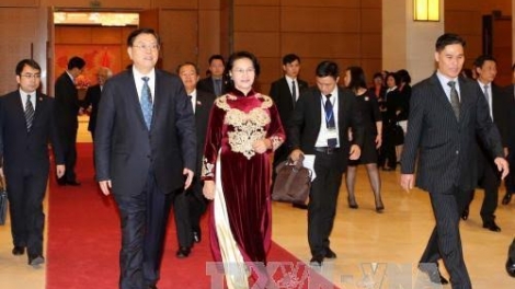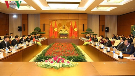(VOVworld)-访越期间,张德江与阮氏金银举行了会谈,拜会越共中央总书记阮富仲和国家主席陈大光,会见政府总理阮春福,列席十一月十日上午举行的越南第十四届国会第二次会议,并出席越中人民友好见面会。