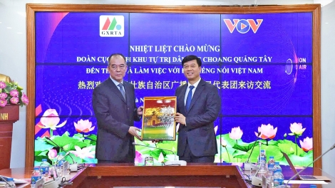 (VOVWORLD) - 在纪念越中建交75周年(1950—2025)及响应“2025越中人文交流年”的系列活动框架内,越南之声广播电台副台长吴明显7月17日下午在河内馆使街58号国家广播中心会见了来越进行工作访问并联合举办“同唱友谊歌·2025越中金曲音乐盛典”的中国广西壮族自治区广播电视局代表团。