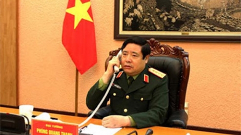 (VOVworld)- 值越中国防部直通电话正式开通、越中两国人民准备迎接2016新年和纪念两国建交65周年的2015年结束之际,越共中央政治局委员、国防部长冯光青12月31日在国防部总部同中国国防部长常万全通电话。