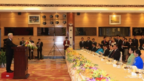 (VOVworld)- 越共中央总书记阮富仲和夫人11月5日在国际会议中心主持招待宴会,欢迎中共中央总书记、中国国家主席习近平和夫人及其一行。