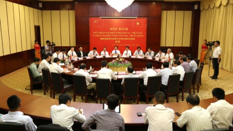 (VOVworld) - 越南老街省领导人5月12日在老街市与来访的由省长陈豪为首的中国云南省代表团举行工作会谈。
