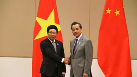 (VOVworld)-越南政府副总理兼外交部长范平明6月18日在河内同中国国务委员杨洁篪举行越中双边合作指导委员会团长会晤。
