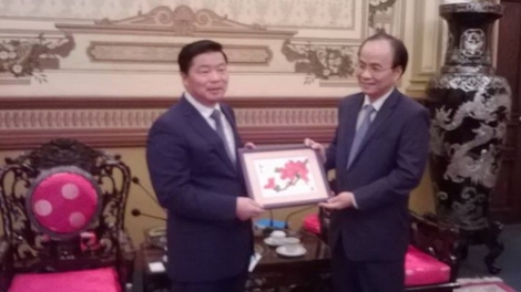 (VOVworld)- 胡志明市人民委员会副主席黎孟河4月23日会见正对越南进行工作访问的中国广州市副市长欧阳卫民。黎孟河表示,胡志明市随时欢迎并愿为前来寻找投资合作机会的广州企业创造便利条件。