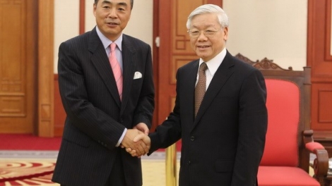 阮富仲会见前来离任拜会的中国驻越大使孔铉佑