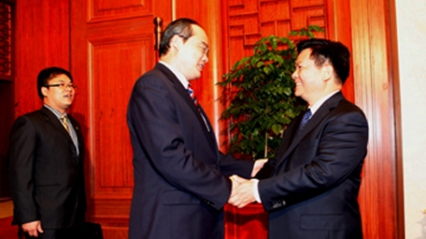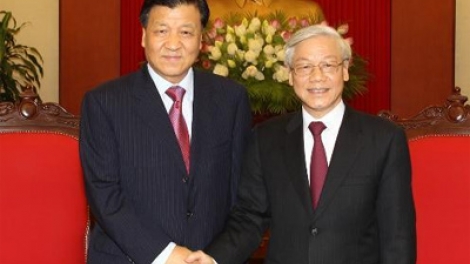 (VOVworld)- 越共中央总书记阮富仲6月6日下午在河内会见正对越南进行正式访问并出席第八次越中两党理论研讨会的中共中央政治局委员、中央书记处书记、中宣部部长刘云山及其一行。