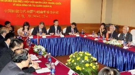 (VOVworld)- 以常务副主席阮文乾为团长的越南友好组织联合会代表团17日在河内与由中国全国政协副主席、中国人民争取和平与裁军协会副会长厉无畏率领的和裁会代表团举行会谈。