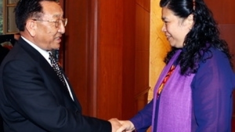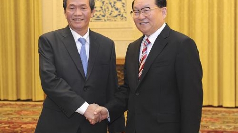 中共中央政治局常委李长春十二月一日在北京人民大会堂会见来华出席第七次越中两党理论研讨会的越共中央政治局委员、中央书记处书记、中央宣教部部长、中央理论委员会主席丁世兄一行。
