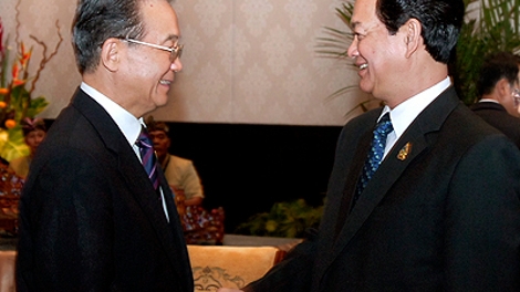 18日下午, 越南政府总理阮晋勇总理在印尼巴厘会见了中国国务院总理温家宝。
