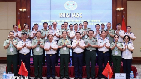 (VOVWORLD) - 越南海警政委裴国威中将和中国海警局副政委刘厚杰少将8月27日共同主持2024年越中海警首届党政工作交流开幕式。