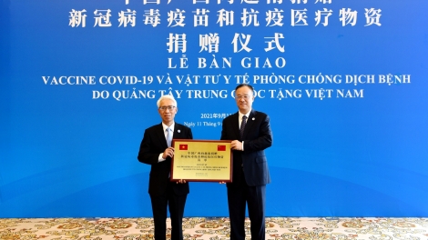 (VOVWORLD) -广西决定向越南各地赠送总值为970万美元的医疗物资,其中包括80万剂中国国药疫苗。越南驻中国大使范星梅感谢广西壮族自治区政府和人民向越南各地提供的及时和宝贵帮助