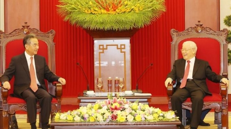(VOVWORLD) -9月11日下午,越共中央总书记阮富仲在河内会见正对越进行正式访问并共同主持越中双边合作指导委员会第十三次会议的中国国务委员兼外交部部长王毅。