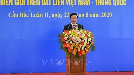 (VOVWORLD) - 《越中陆地边界条约》签署20周年暨越中陆地边界三份法规文件实施10周年纪念活动8月23日上午在越南芒街-中国东兴国际口岸北仑二桥举行。越南政府副总理兼外长范平明和中国国务委员兼外交部长王毅共同主持活动。