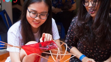 (VOVWORLD) -在越南全国各地热闹的中秋气氛中举行的多项活动有助于青少年了解和感受今日中秋节的文化价值。由“我的河内”小组举行的“今日的中秋——昔日的印迹”就是这样的活动。参加活动的人可以直接观看民间艺人制作五星灯笼、纸博士、纸面具等。有趣体验让孩子们置身于传统中秋节的气氛中。