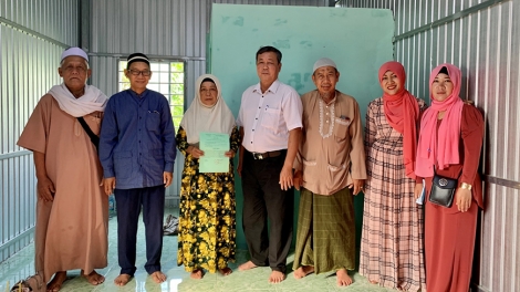 (VOVWORLD) - 安江省周富县庆和乡穆斯林占族妇女思迪·哈拉(Sity Hara)曾在马来西亚留学,就读社会人文专业。四年学成毕业,怀着对祖国的热爱、对社区的关心,哈拉决定回到越南,投身祖国家乡和安江占族社区建设。作为越南祖国阵线中央委员会委员、安江省穆斯林社区代表委员会慈善委员会副主席,哈拉动员了数百亿越南盾兴建大团结之家、慈悲之家、设立助学基金,帮助穷人和家境困难的人。