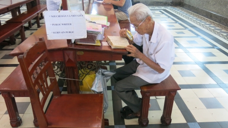 (VOVWORLD) -坐在越南西贡中心邮局大楼内,于1930年出生的杨文悟是个头发花白、眼神柔和的老大爷。27年来,他就坐在这个好像专属自己的空间里代人写信。他是西贡市最后一个代人写信者,同时也是被越南记录中心收录的“越南代人写信时间最长的人”。