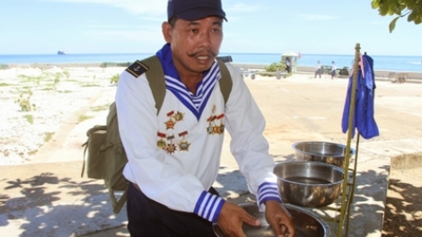 (VOVworld)-离开东长沙近30年了,但老兵陈文出仍时刻想念着长沙群岛中的这座岛屿。在东长沙度过的青春岁月,留下了他与亲爱的战友们的许多记忆。因此,退伍多年后,陈文出决定在自家的院子里建仿制的东长沙岛主权碑,向当地居民和学生、游客宣传祖国神圣的海洋海岛主权。这也是他与分开已久的战友们重新联系的方式。