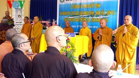 (VOV)-据本台驻中部记者太平报道,越南庆和省佛教教会治事委员会9月22日举行仪式,公布并向志愿赴长沙岛县3座寺庙从事佛事活动的5名僧侣颁发任命书。