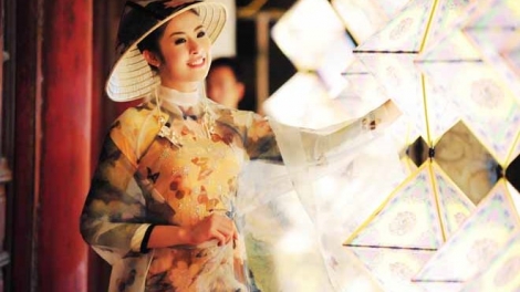 (VOVworld)-以“越南“奥黛”中的世界”为主题的“奥黛”表演14日晚在午门广场举行,这是2014顺化艺术节的一项重点活动。