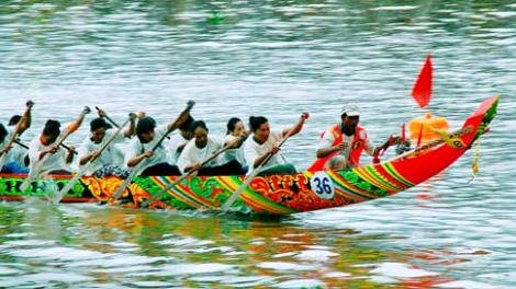 (VOVworld) - 越南高棉族每年有很多传统节日,其中祭月节和赛龙舟规模最大,也是一年当中最后举办的节日。赛龙舟是高棉族人辛苦了一年之后好好放松的一次机会。这种体育娱乐活动场面热烈,引人入胜,起源于高棉族的一个古老风俗。相传,以前,龙舟是高棉族人用来打击敌人的水上专用工具。每座寺庙必备一艘,且必须好好保管。