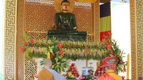 (VOVworld)-这尊世界和平玉佛是世界上最大和最庄严的玉佛,于2008年12月底雕成。佛像高2.54米,宽1.77米。