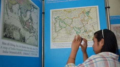 (VOVworld)- 展览展示国内外专家学者近来公布的资料、文件、文物,以及近100张地图。展示的资料包括十七世纪至二十世纪初,越南封建王朝和印度支那法国殖民政府代表当时的越南政府发布的汉喃字、越语和法语文件。