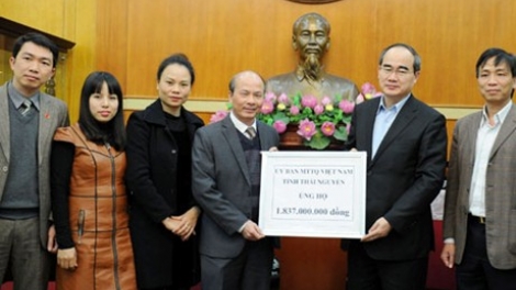 (VOVworld)- 越南祖国阵线中央委员会主席阮善仁12月30日接受太原省通过该委员会向在海上执法的力量及执行捍卫国家海洋岛屿主权任务的战士和渔民赠送的18亿越盾。