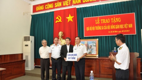 (VOVworld)- 越南天主教主教团副秘书长阮文坎主教在赠送仪式上表示,越南人盼望和平生活,旨在建设并发展祖国。但每当国家主权受到威胁,希望和平的越南人也愿为维护国家主权而战斗。这份责任并不是某个人的,而是包括天主教徒在内的每一个越南人的。