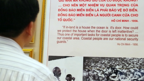 (VOVworld)- 展览展示近200张地图、草图、图片、资料和实物,分为三大部分:历史上的越南海洋海岛主权、胡志明主席与越南海洋海岛和当前祖国建设事业中的海洋海岛。