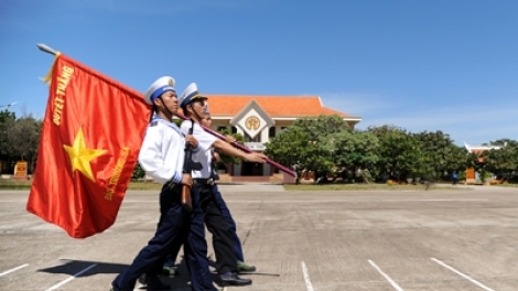 长沙岛和河内巴亭广场同时举行向国旗敬礼和升旗仪式