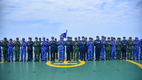 (VOVWORLD) - 越南和中国海警力量自11月25日至30日在北部湾分界线邻近海域进行联合巡逻。参加活动的越方编队由海警第一区8004舰和8003舰组成,海警第一区副司令、参谋长梁高凯为团长。