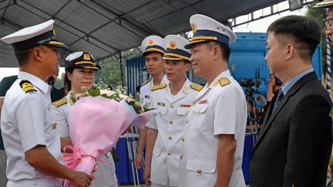 黎贵惇号帆船与新加坡海军军舰举行交流活动