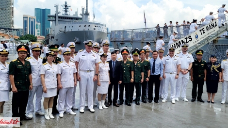 (VOVWORLD) - 由新西兰皇家海军“特马纳”号(HMNZS Te Mana)导弹护卫舰及“长白云”号(HMNZS Aotearoa)补给舰组成的舰队自9月24日至28日停靠胡志明市西贡港,对越南进行友好访问。