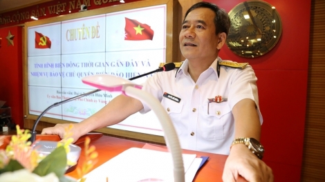 (VOVWORLD) - 8月17日在庆和省,以副政委阮友明大校为首的越南海军第四区工作代表团与庆和省省委宣教部联合举行海洋岛屿宣传普法活动。当地100多名报告员参加活动。