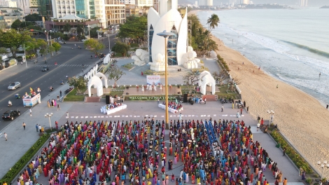 两千多名女性身穿奥黛在芽庄沿海街道游行