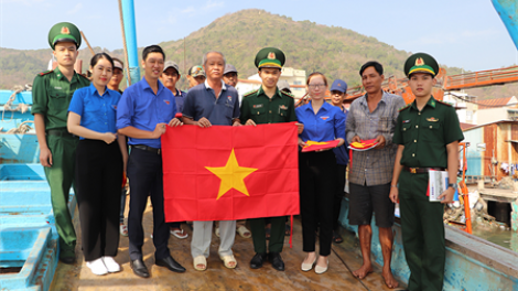 (VOVWORLD) - 越南海上警察司令部2月21日在坚江省土珠岛发放传单,宣传打击非法、不报告和不管制捕鱼(IUU)行为相关规定,同时向岛上居民赠送国旗,向当地政府机关、武装力量赠送礼物,向政策优抚家庭、贫困学生赠送50份慰问品。