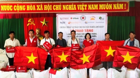 (VOVWORLD) - 越南红十字会计划2023年向2.81万人次渔民赠送国旗、救生衣、急救包等物品,同时帮助250名贫困渔民新建和维修住房,帮助1万户渔民家庭发展可持续生计。计划所需资金约2070亿越盾(约合870万美元)。