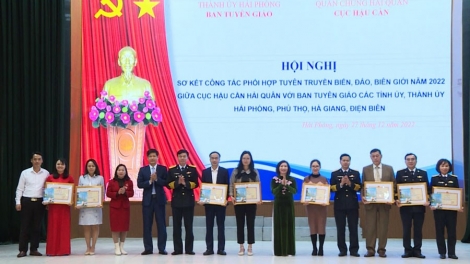 (VOVWORLD) - 越南人民海军后勤局与海防市委宣教部12月17日在海防市联合举行后勤局与海防、富寿、河江、奠边等省市党委宣教部2022年海岛边境宣传工作配合情况总结会议。