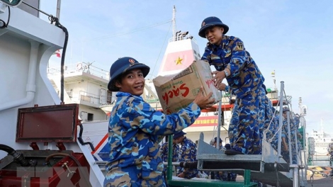 (VOVWORLD) - 越南海军第四军区司令部12月21日在庆和省金兰军港举行出征仪式,欢送向长沙群岛驻岛干部、战士和居民运送年礼和拜早年的工作代表团。