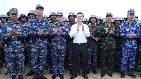 (VOVWORLD) - 越共中央书记处常务书记武文赏同越南国防部部长潘文江大将12月4日探望并全面检查海军部队训练工作。
