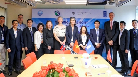 (VOVWORLD) - 联合国开发计划署(UNDP)、挪威驻越南大使馆11月23日在河内签署帮助越南制定海洋空间国家规划,促进海洋可持续发展并应对气候变化的合作协议。